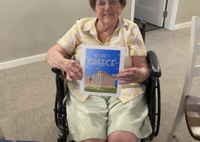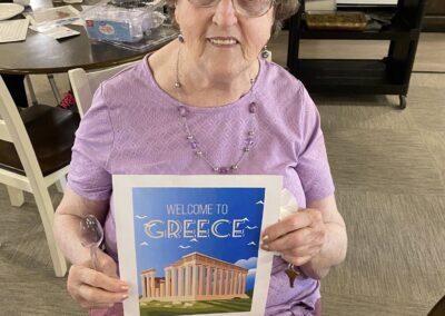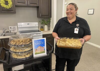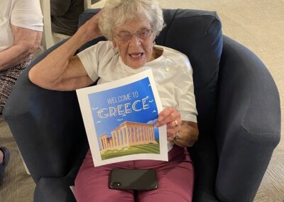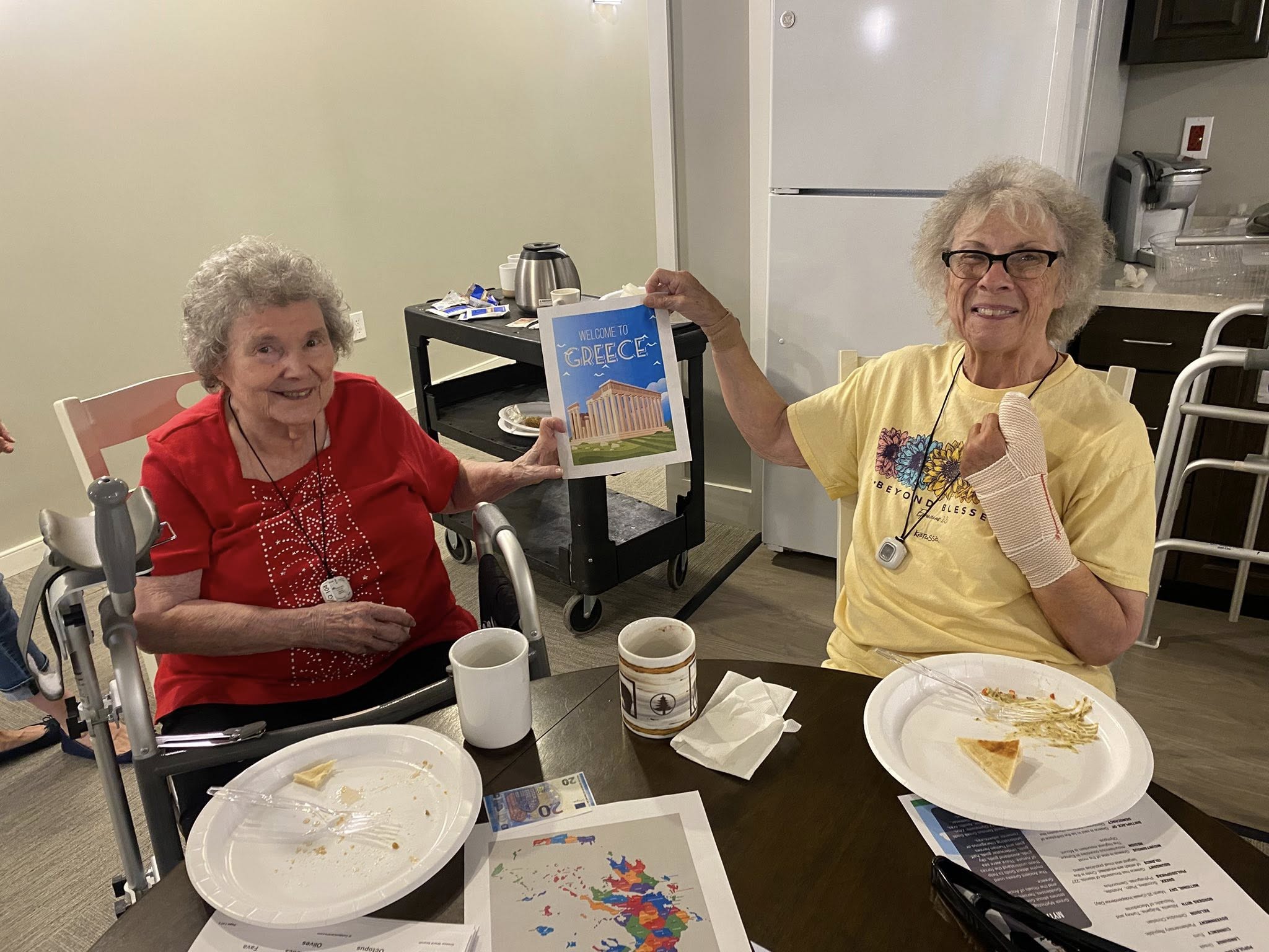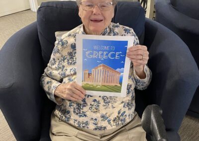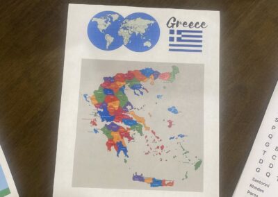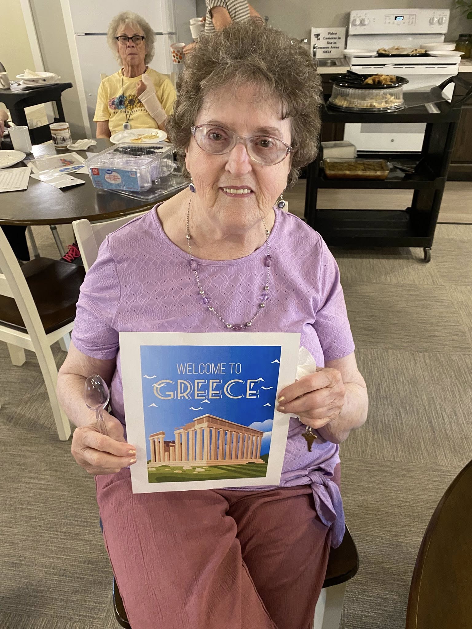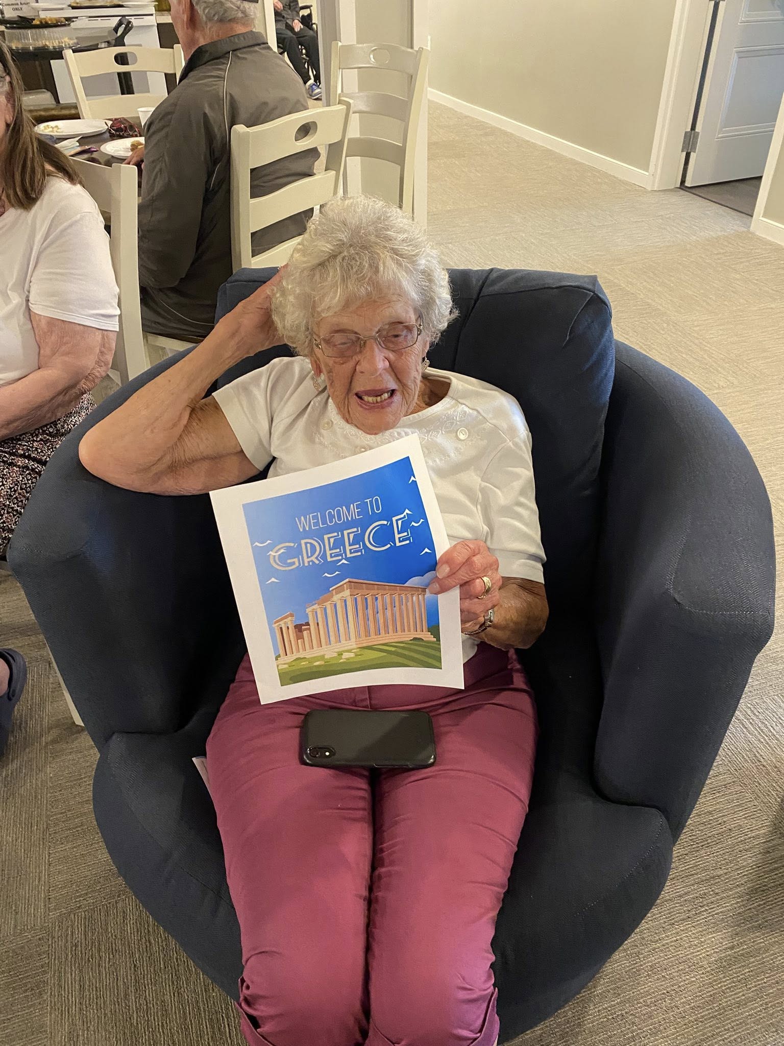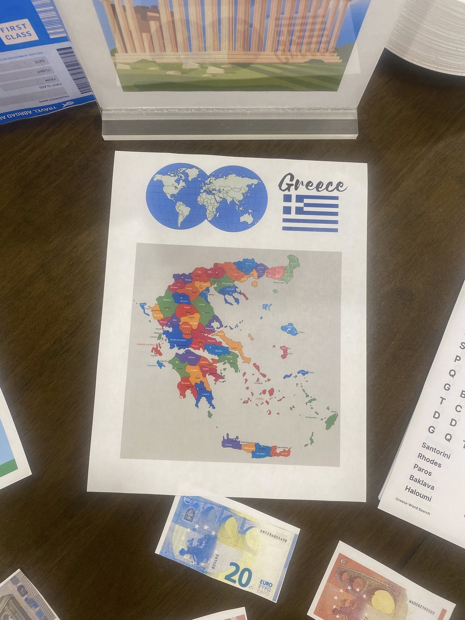 Armchair Adventures: A Taste of Greece! This month our Armchair Travel took us to Greece. We also enjoyed eating homemade Balaclava, hummus and pita bread. Thanks again to our amazing chef Stephanie.💙💙Next month we visit Germany.🇩🇪