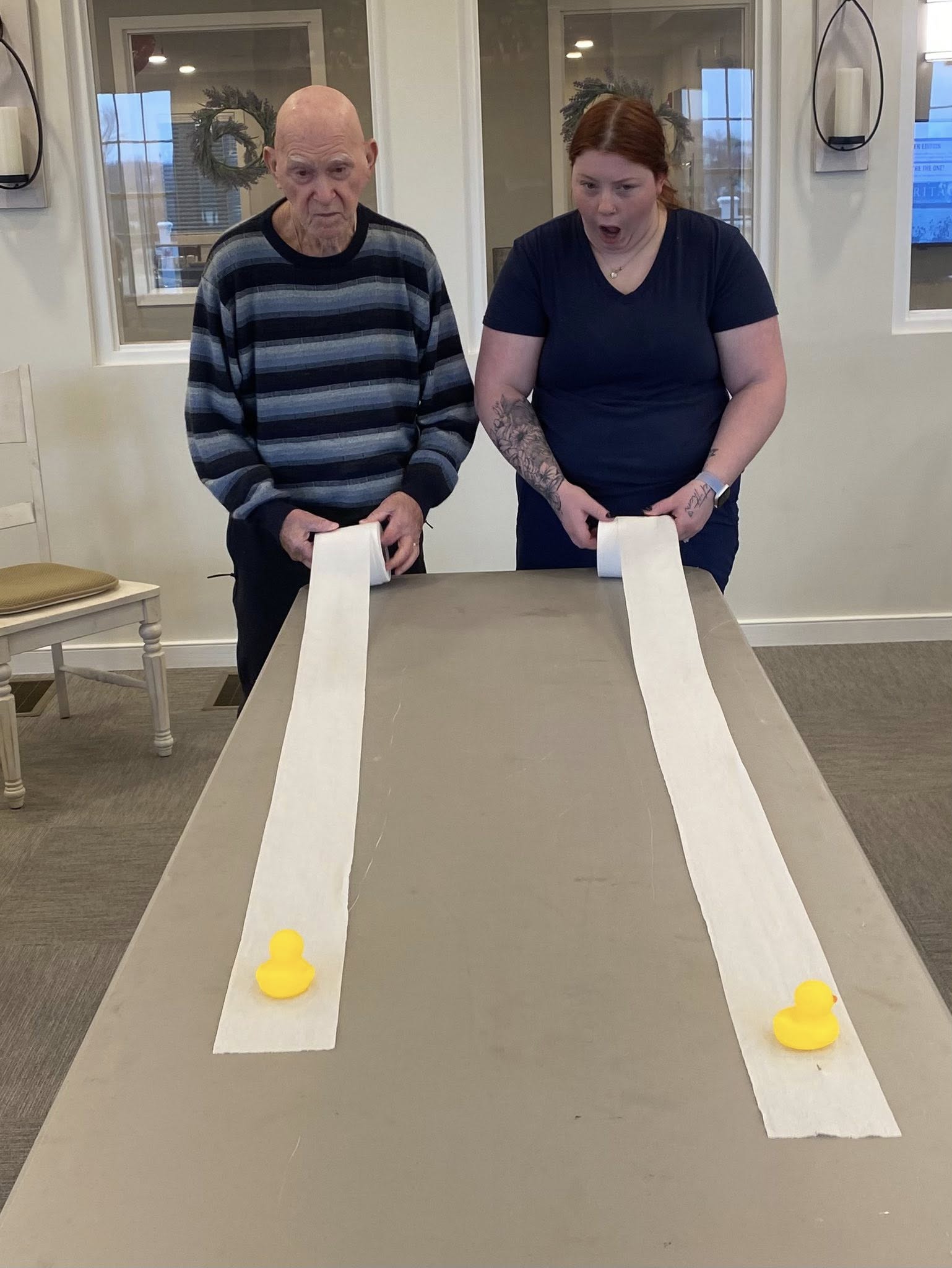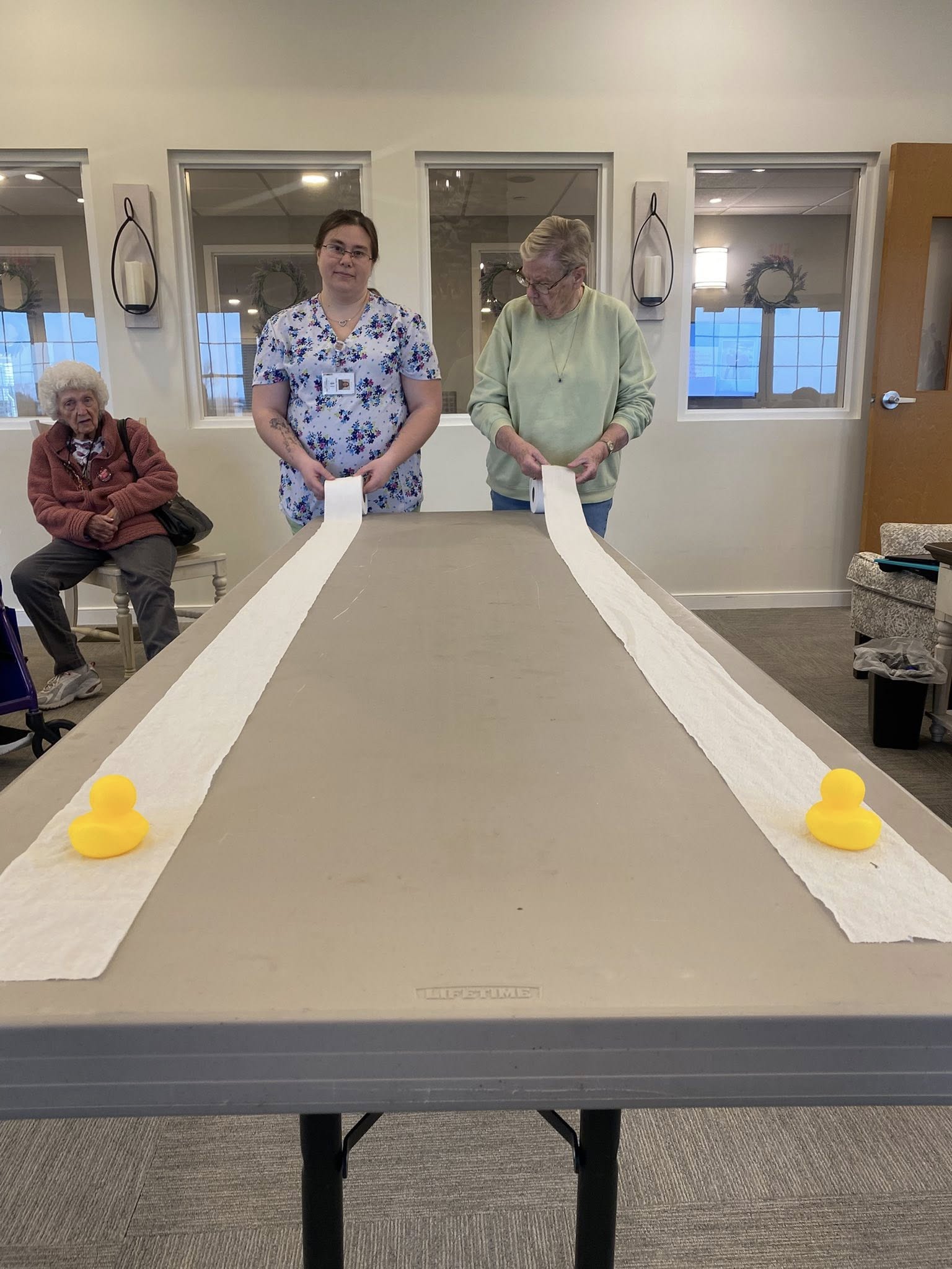 Rubber Duck Race Day at Heritage 🐤 The residents at Heritage consistently engage in unexpected activities daily. Today featured a Rubber Duck Race Day event, proving to be enjoyable for both participants and observers alike.